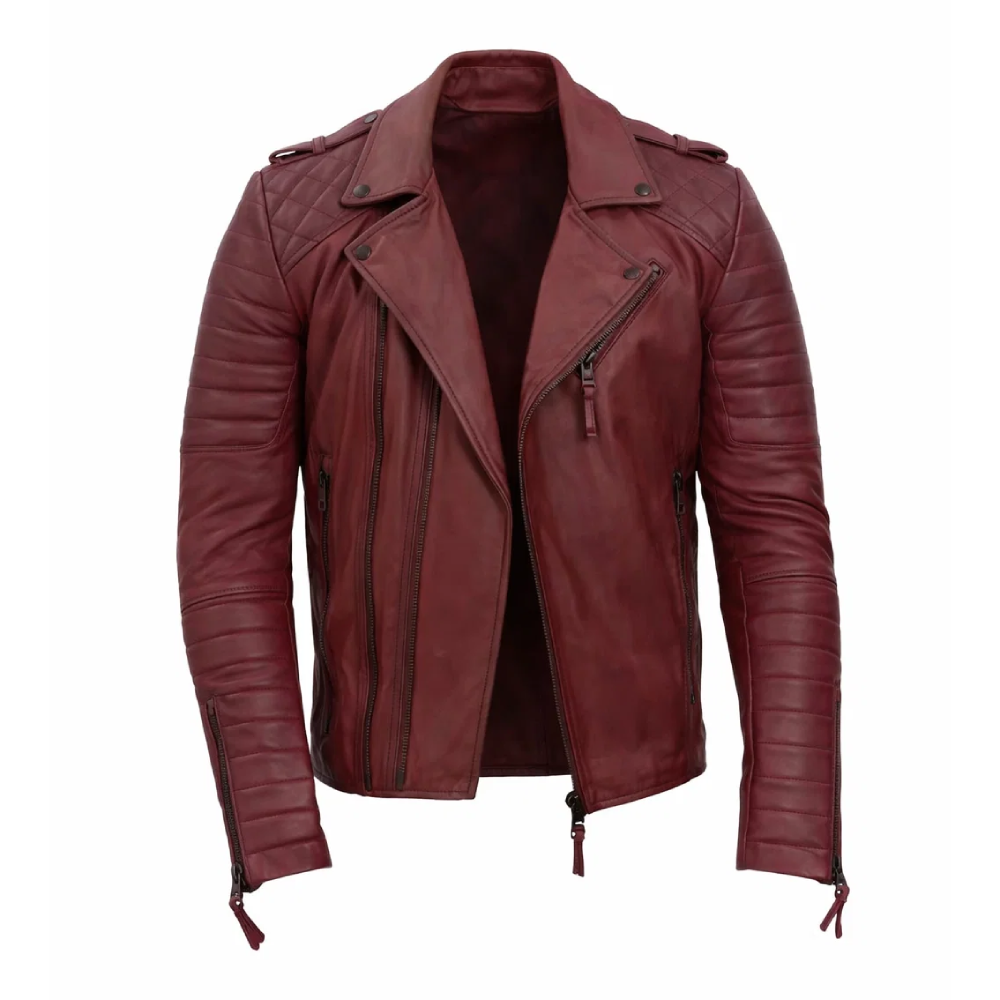 Brando Mens Real Lambskin Burgundy Leather Biker Jacket