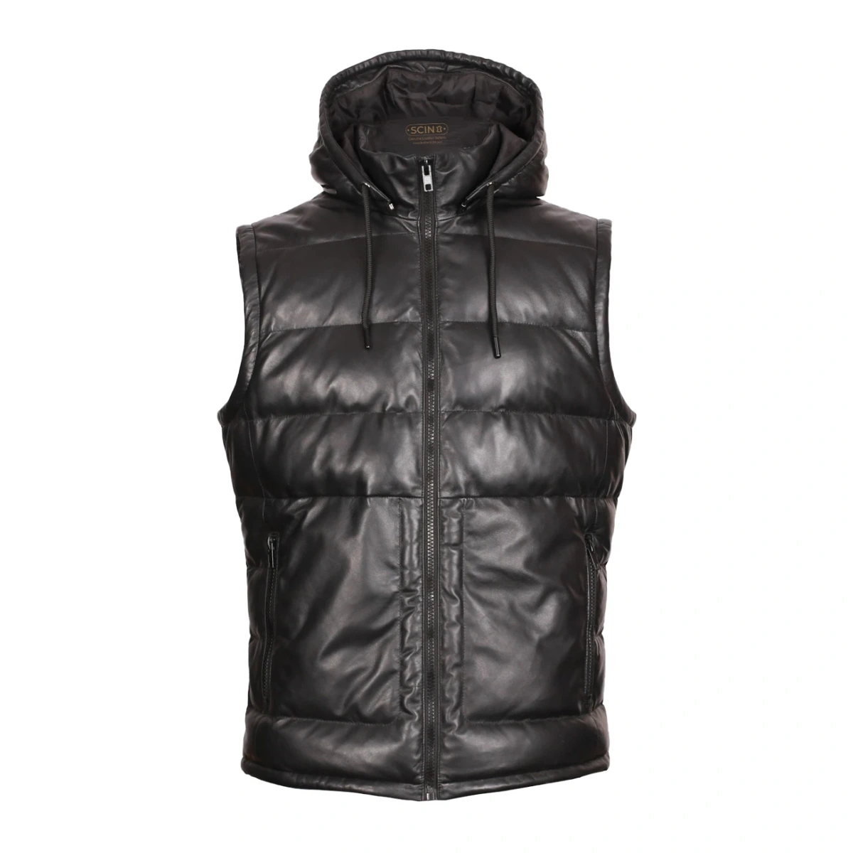 Men’s Hooded Leather Puffer Vest