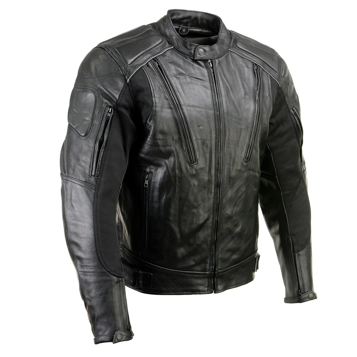 Men’s Premium Black Leather Motorcycle Bikers Rider Jacket w CE Armor